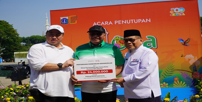 Jakarta, 10 Oktober 2025 — Dinas Pertamanan dan Hutan Kota Provinsi DKI Jakarta menyalurkan sumbangan kemanusiaan sebesar Rp 24 juta kepada Palang Merah Indonesia (PMI) Kota Jakarta Pusat. Penyerahan dilakukan pada acara penutupan Flora dan Fauna (Flona) Jakarta 2025 yang berlangsung di Lapangan Banteng, Jakarta Pusat, Jumat (10/10).