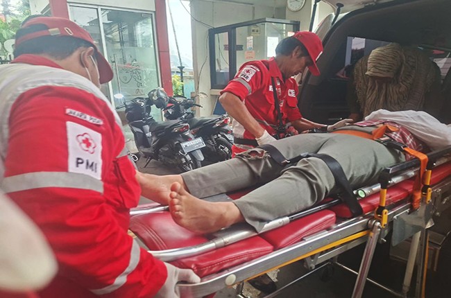Setelah mendapatkan pertolongan awal, korban kemudian dirujuk ke RSUD Sawah Besar menggunakan ambulans PMI Jakpus untuk mendapatkan perawatan medis lanjutan.